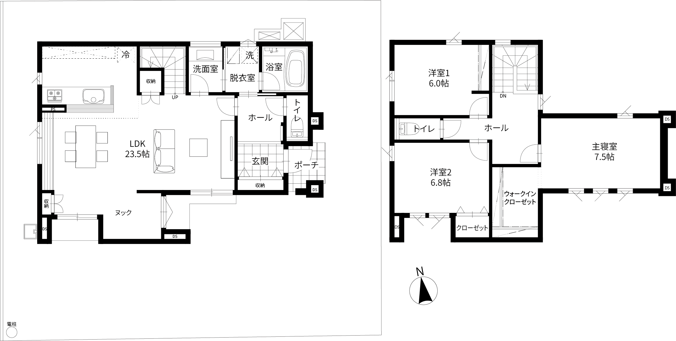 延床面積 / 111.91㎡(33.60坪) 1階 / 60.19㎡(18.20坪)2階 / 50.90㎡(15.39坪)